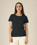 Iconic mid-light women’s t-shirt. Fitted. Set-in sleeve. 1x1 rib at neck collar. Inside back neck tape in self-fabric. Narrow twin-needle topstitch at sleeve cuff and hem.